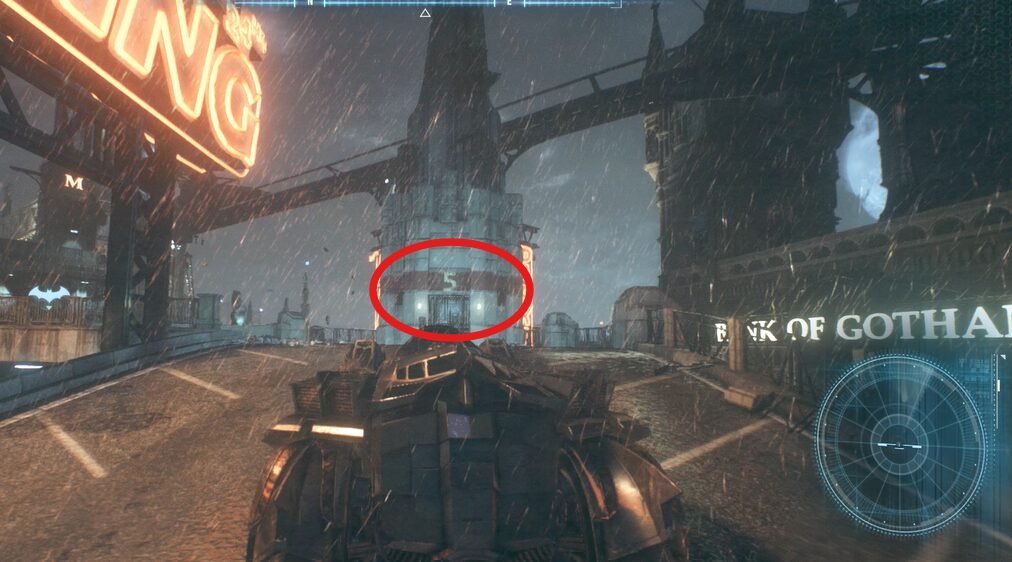 ペンギンの手下を一掃した後、出口で敵が待ち伏せしていますので、バットモービルをリモートで操作して倒します。