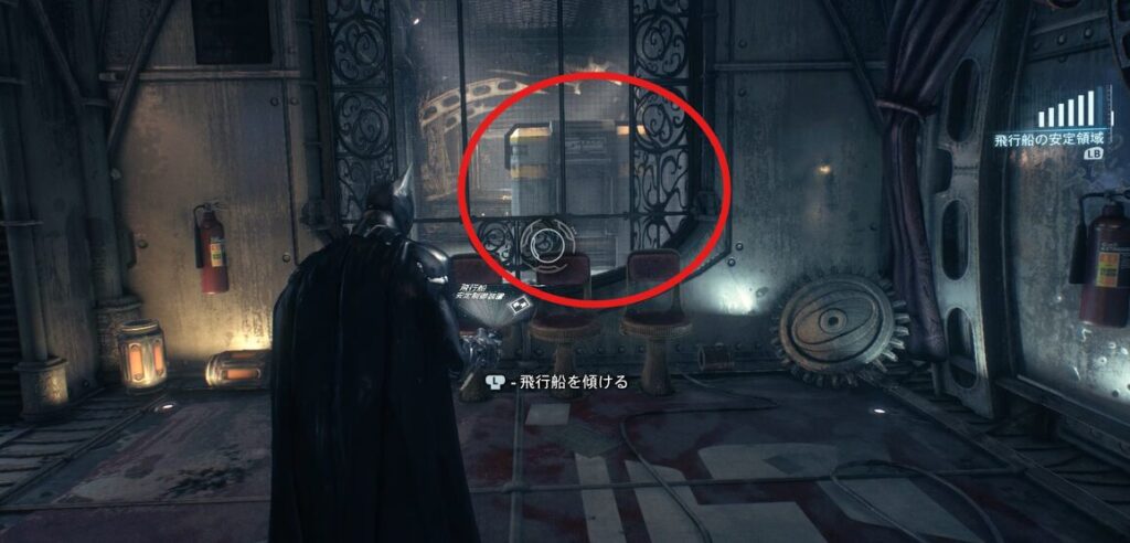 右に飛行艇を傾けたら、真ん中のタンクを遠隔ハッキング装置でロックして動かないようにした後に飛行艇を左に傾けたら、先に進めるようになります。