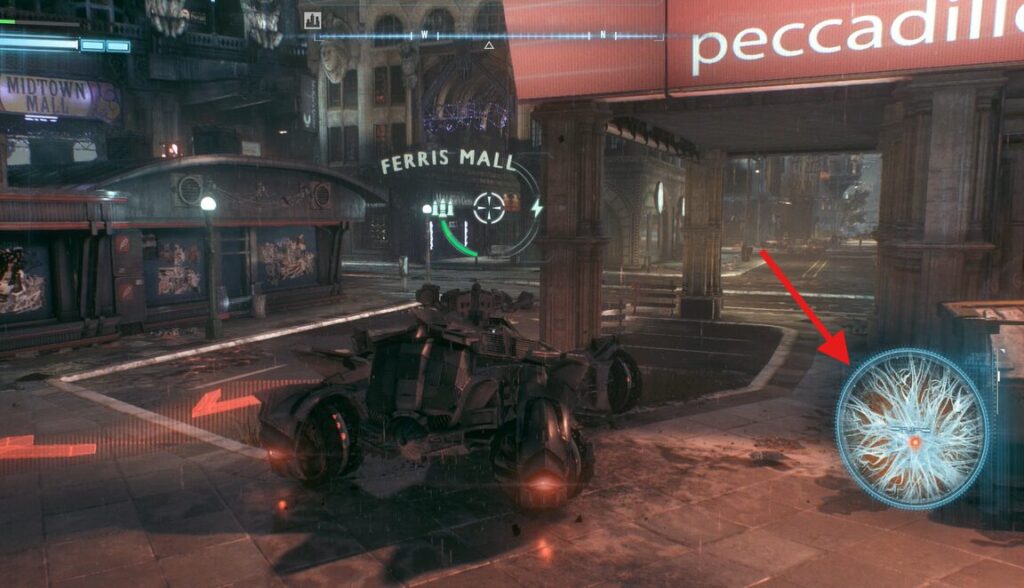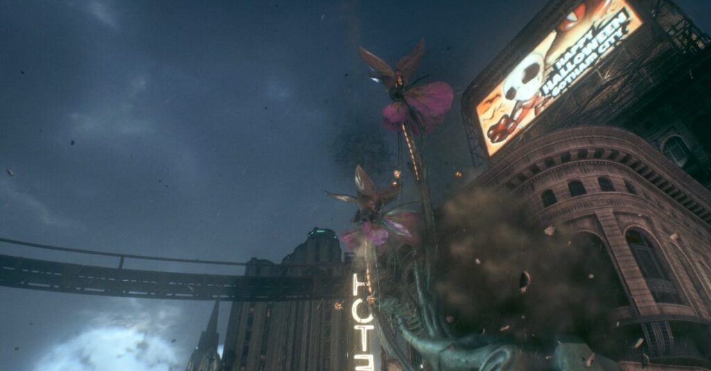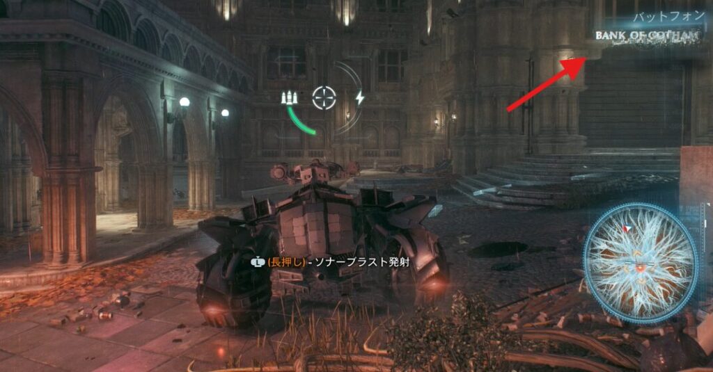 ”BANK OF GOTHAM”の前でソナーブラストを使用したら、アイビーの植物が出てきました。