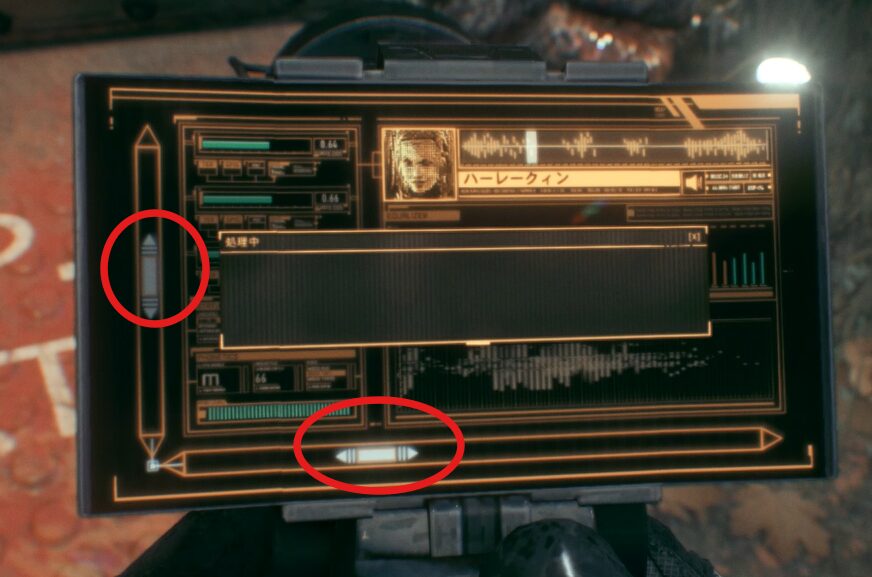 このドアの前に着いたら、ハーレークインの声を使用しなければ中に入れませんので、ボイスシンセサイザーでハーレークインの声をコピーしましょう。