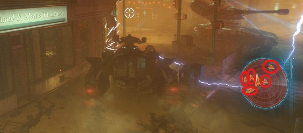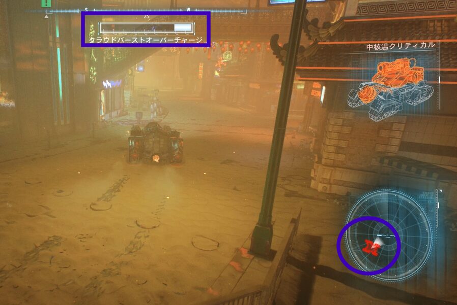 まず、クラウドバースト戦車以外のコブラ戦車を全部破壊します。(上図レーダーの赤丸)