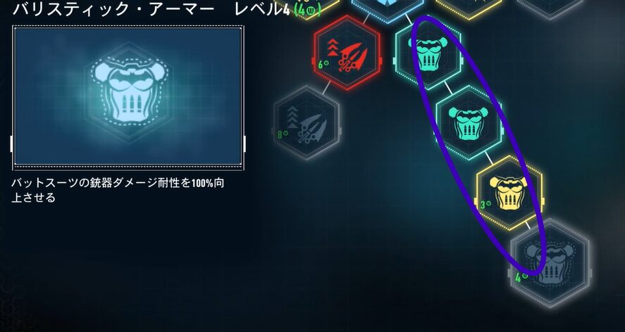 この後、バットスーツのレベルをある程度まで上げて、余裕ができたら、装甲レベルをもう一段階上げるのがおすすめです。