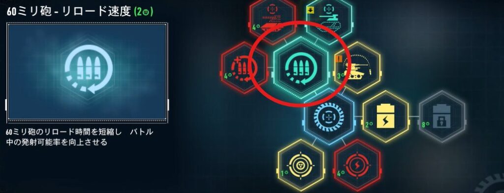 その他のおすすめとしては、バットモービルの武器『リロード速度』です。