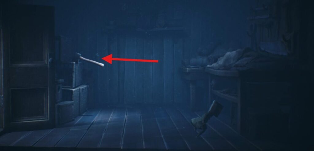 一番左の部屋に行って、斧で板を壊して中に入る。
