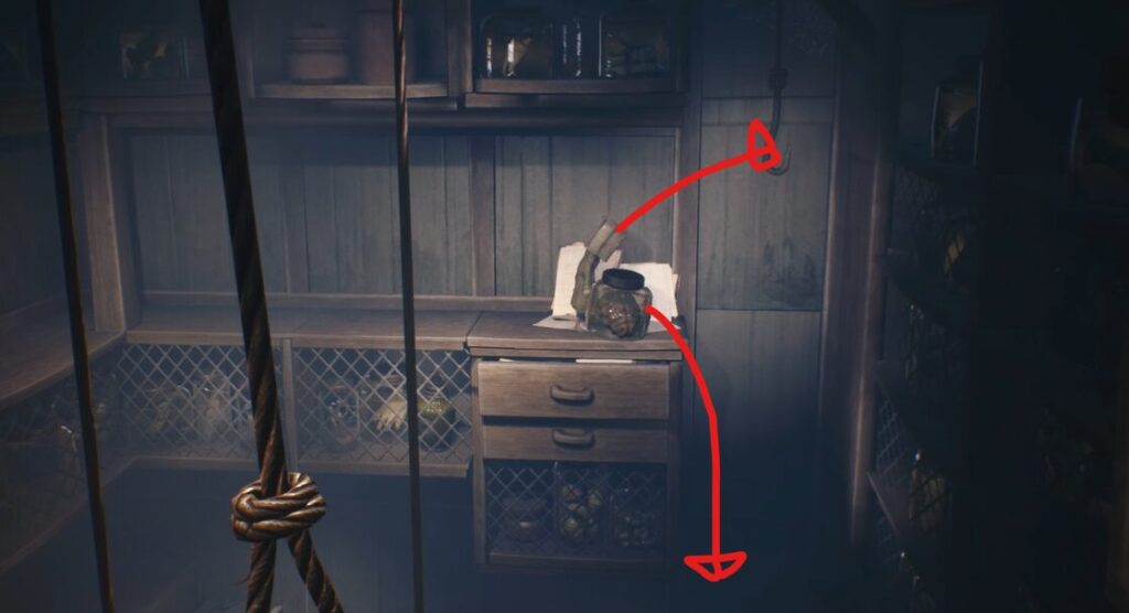 脳みそを落として、フックをつかんで下に降ります。