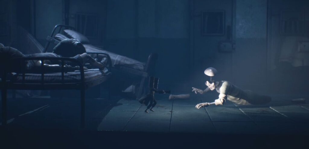後ろから患者の人形が追いかけてきますが、走り抜けてベッドの下を抜ければ逃げれます。