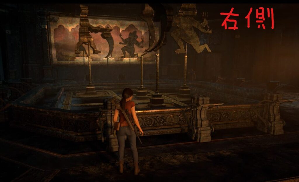 チャプター5:伝説の戦いで影と絵を合わせる謎解きの箇所があります。