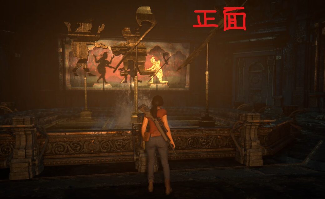 チャプター5:伝説の戦いで影と絵を合わせる謎解きの箇所があります。