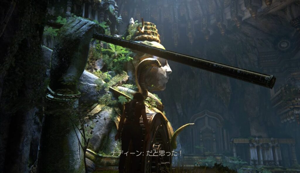 ドアが開き、左手側にいたナディーンと合流し、中央から出るとギミックがあるので作動させます。