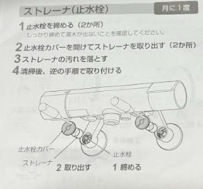 ストレーナーの掃除方法です。