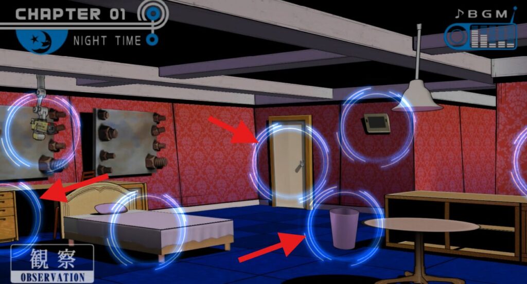 Yボタンを押したら、調べられる箇所が丸で囲まれるのでAボタンで一通り調べてみる。