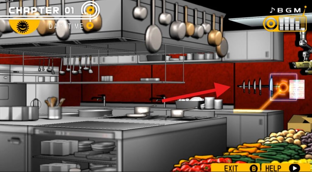 体育館にいる葉隠康比呂と会話して、食堂の奥の厨房に行く。