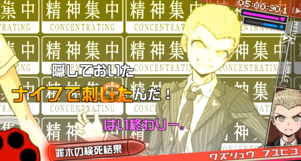 九頭龍の「ナイフで刺した」に言弾「罪木の検死結果」を撃つ。
