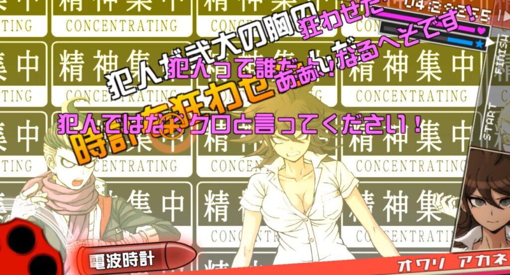 終里の「時計を狂わせた」に言弾「電波時計」を撃つ。