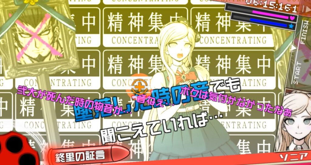 ソニアの「墜落した時の音」に言弾「終里の証言」を撃つ。